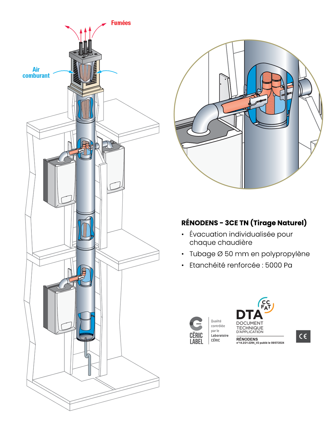 RÉNODENS - 3CE TN permet d’utiliser et de rénover les conduits collectifs maçonnés existants (3CE tirage naturel)